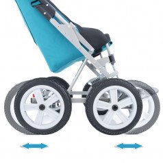 Nova легко справляется с любыми типами местности, будь то ровные дороги или грунтовые тропинки. Это обеспечивается невесомой и прочной конструкцией коляски, что делает её маневренной и удобной в передвижении. Кроме того, коляска может быть легко сложена для транспортировки. Конструкция Nova позволяет регулировать расстояние между осями колёс, что дает возможность устанавливать их шире для повышения устойчивости коляски.