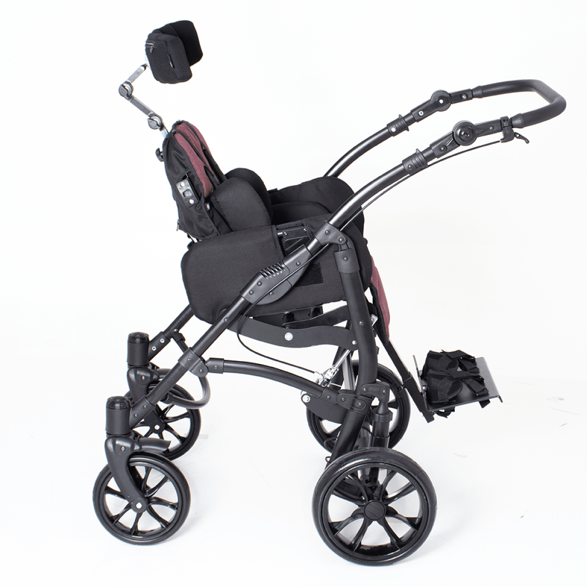 Регулируемая высота спинки, глубина сиденья и длина подножки позволяют не просто обеспечить комфорт, но и гарантировать, что коляска будет эффективно использоваться на протяжении нескольких лет. Система поддержки туловища и бёдер в коляске Akcesmed Hippo Aura представляет собой усовершенствованную конструкцию, которая обеспечивает правильную боковую стабилизацию.