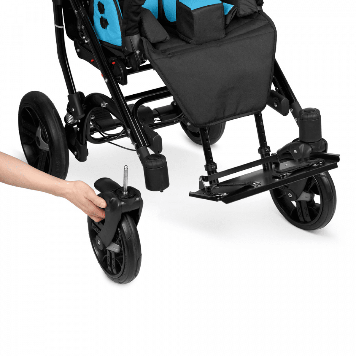 Армед Эвита Нео — современная коляска российского производства, разработанная для ежедневного ухода и прогулок с детьми с ДЦП и другими двигательными нарушениями. Она сочетает комфорт, безопасность и компактность: лёгкая складная рама, съёмные колёса и манёвренные передние колёсики упрощают хранение и транспортировку, а пневматические шины обеспечивают мягкий ход по любым дорогам.