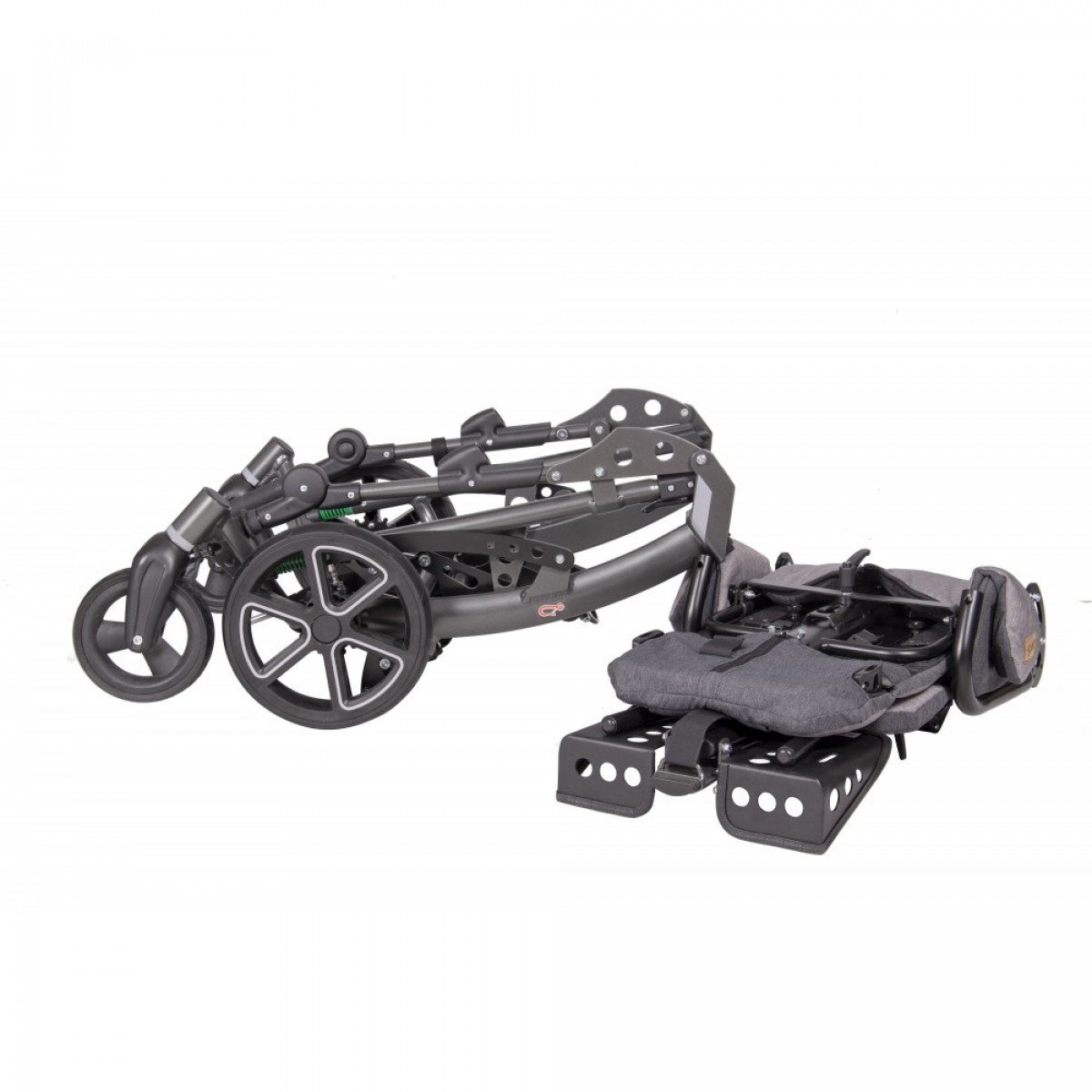 - Коляску можно сложить, как отдельно рама и сиденье, так же вместе с закреплённым сиденьем