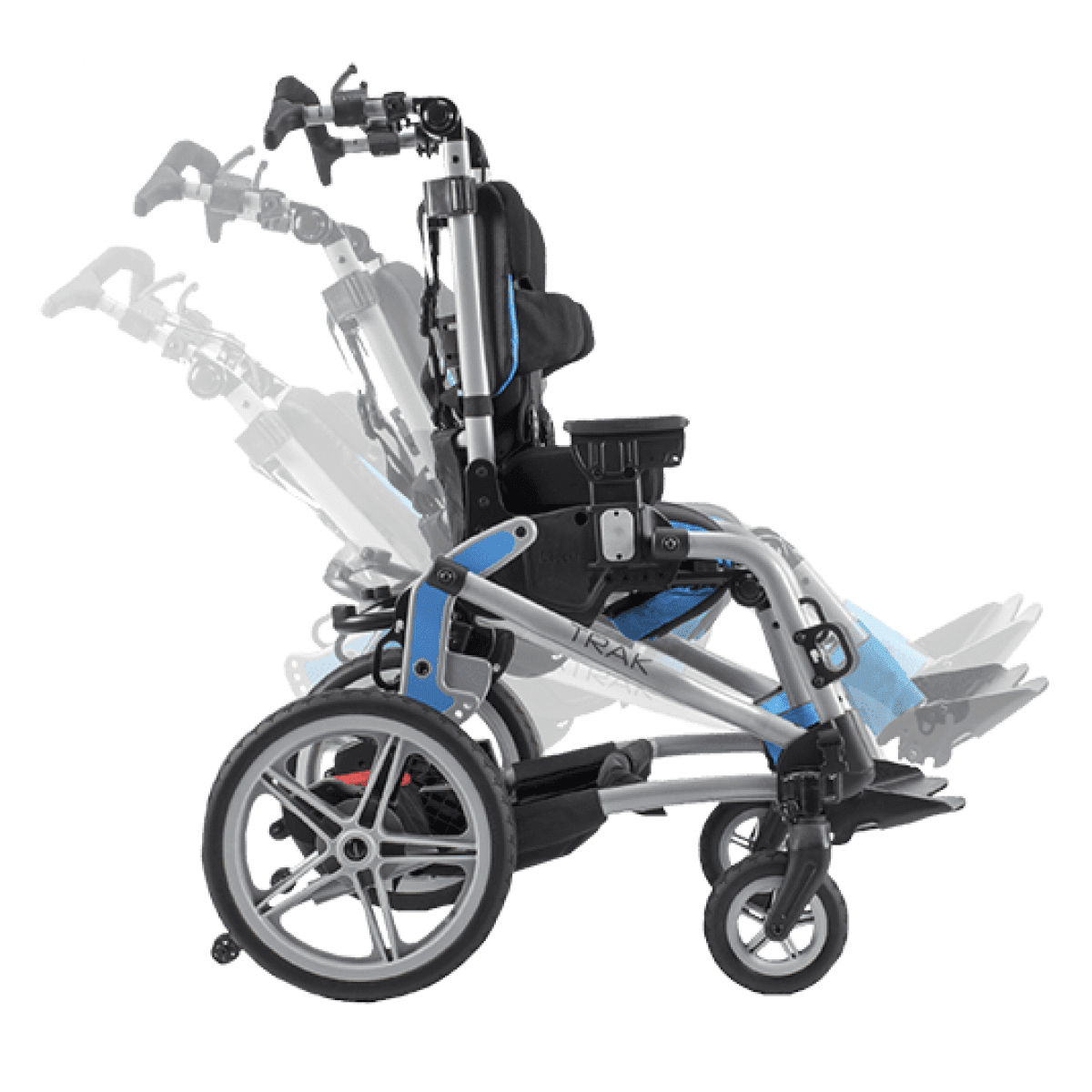 Коляска Trak обеспечивает высокую степень стабилизации верхней части тела пользователя. Подушка сиденья спроектирована так, чтобы наилучшим образом позиционировать и стабилизировать таз ребёнка, что оказывает огромное влияние на защиту тазобедренного сустава и определяет осанку всего тела. Боковые поддержки, пятиточечный ремень, жилет и ремни, стабилизирующие таз, обеспечивают правильную и комфортную транспортировку пользователя с сохранением пассивной коррекции дефектов осанки. Конструкция коляски обладает высокой устойчивостью наряду со встроенными съёмными антиопрокидывателями, большие колёса снижают контакт с неровной поверхностью на пересечённой местности и делают ход более плавным. Особенностью коляски является конструкция динамического сиденья, жёсткость отклика которого можно регулировать.