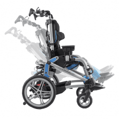 Сиденье и спинка имеют широкий диапазон регулировок по углу наклона. Рама коляски складная. Для удобной транспортировки коляски в автомобиле задние колёса быстросъёмные. Для плавности хода подвеска задних колёс оснащена амортизаторами. Передние колёса может быть зафиксированы по направлению движения.