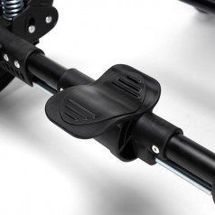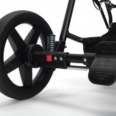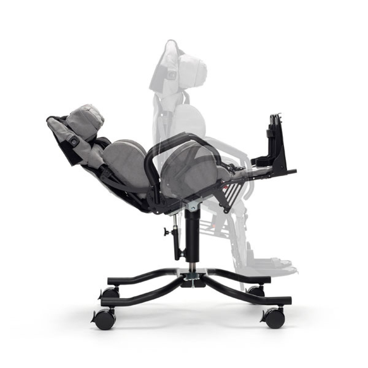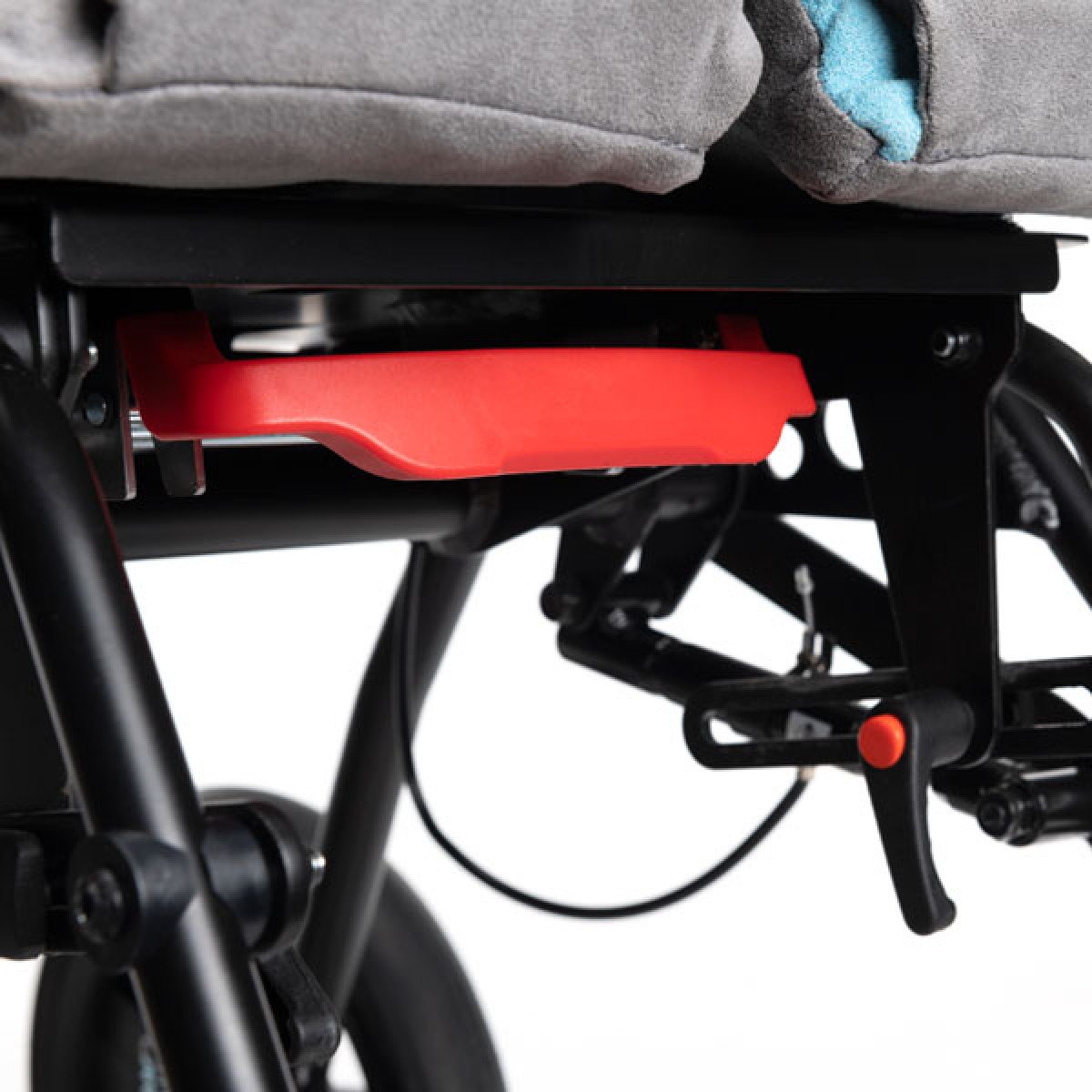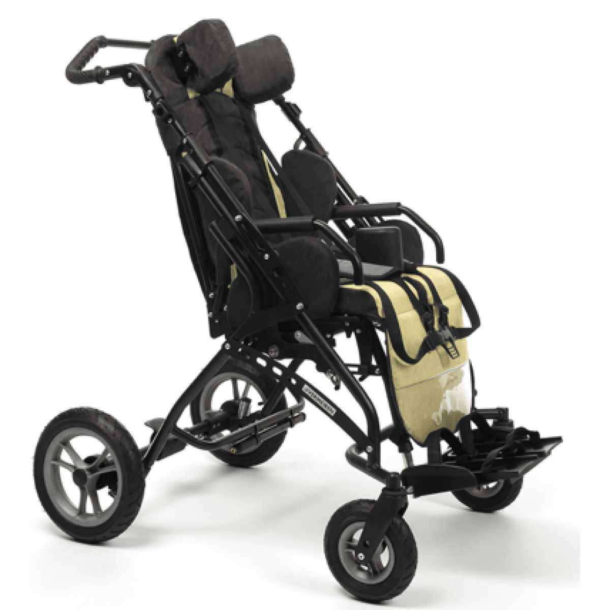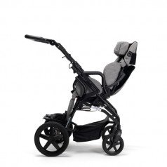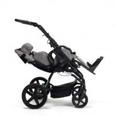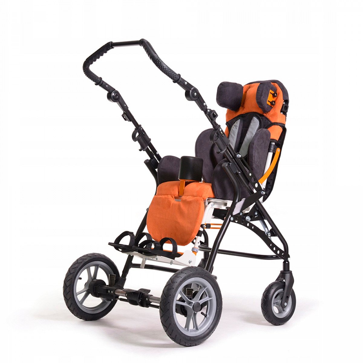 Спинка кресла может наклоняться до 160 градусов, что позволяет ребёнку принимать удобное положение для отдыха как дома, так и на улице. Подножка единая и регулируется по углу наклона, превращая кресло в удобную кушетку. Мягкий съёмный абдуктор помогает контролировать положение ног, предотвращая их перекрестие, а боковые поддержки обеспечивают фиксацию тела в правильном положении, что способствует повышению безопасности и комфорта. За счёт появления амортизаторов коляска может двигаться ещё мягче. Задние колеса пневматические, они дополнительно снижают дискомфорт при движении, поглощая неровности дороги.