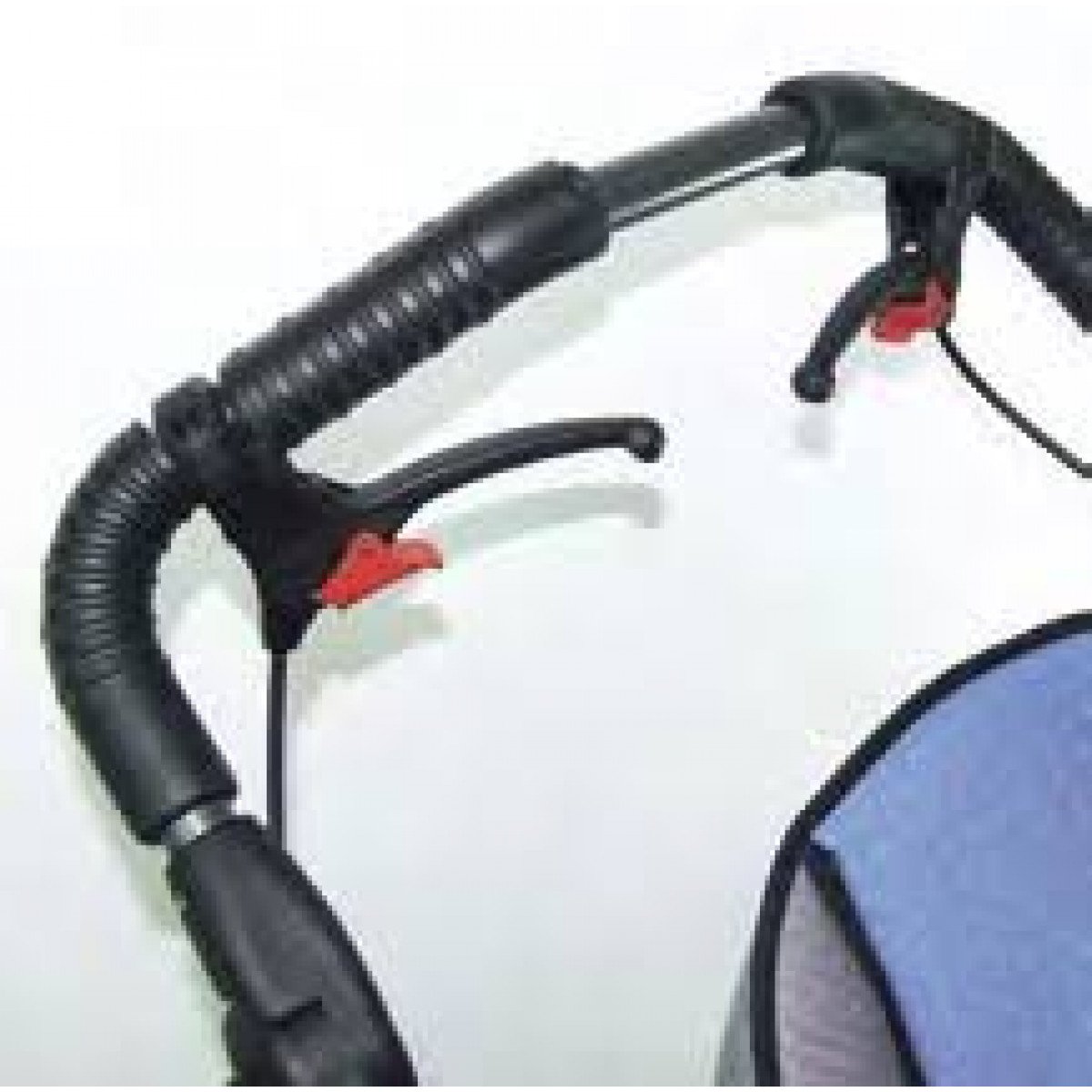 - Колёса пневматические, 5-спиц, с чёрным ободом, с барабанным тормозом, с функцией блокировки
