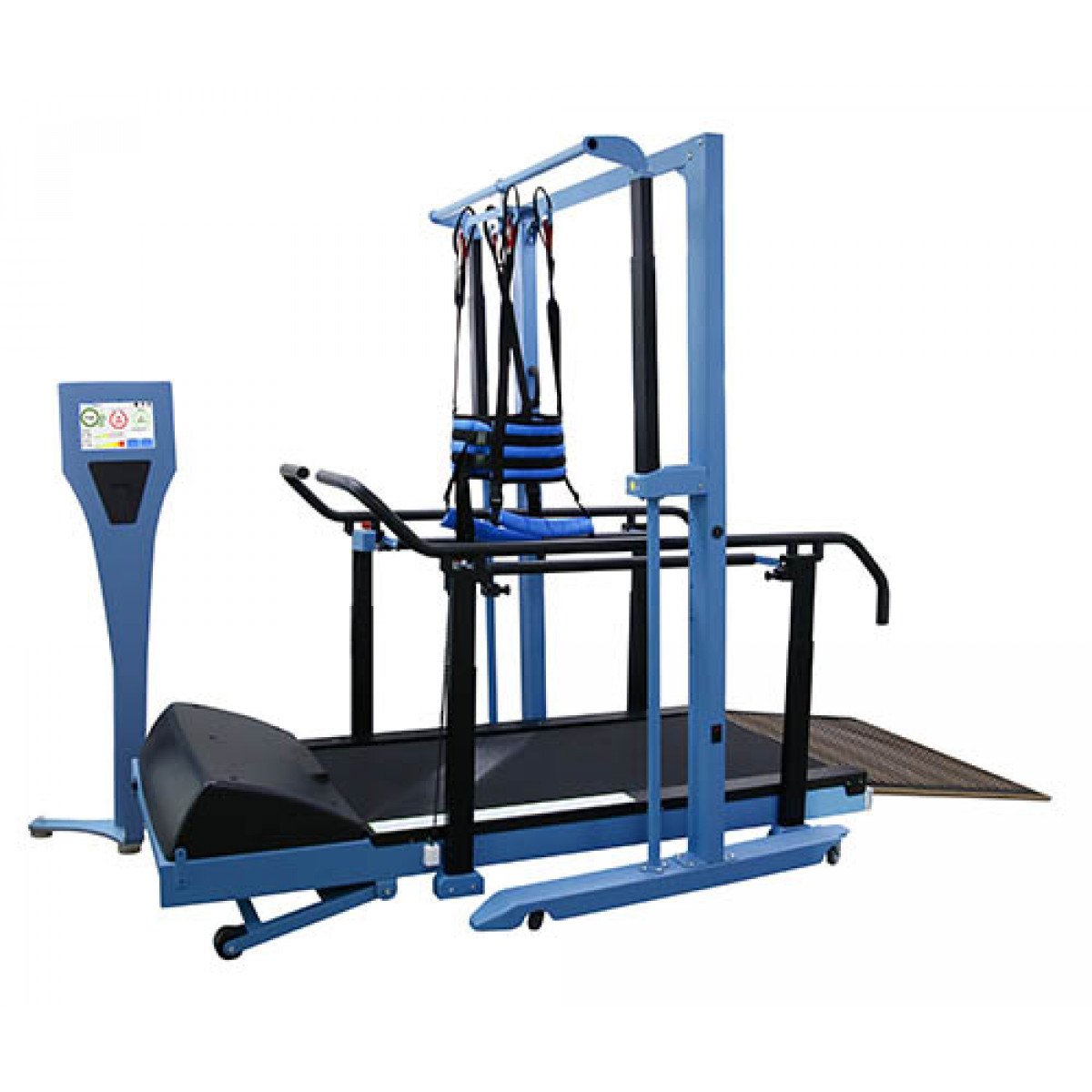 Роботизированный комплекс для локомоторной терапии и реабилитации нижних конечностей, укомплектованный медицинским тредбаном, предназначен для вертикализации пациентов и восстановления навыка ходьбы с одновременной разгрузкой опорно-двигательного аппарата, а также для транспортировки лежачих больных. Система используется для реабилитации в таких областях как неврология, ортопедия, кардиология, пульмонология, гериатрия, ЛФК. Медицинский тредбан с системой разгрузки тела пациента предназначен для облегчения процесса физического восстановления на 2 и 3 этапах реабилитации людей с ограниченными возможностями. Беспроводной датчик ЧСС входит в комплект поставки. Тренажер отображает на мониторе все необходимые параметры тренировки для полного контроля терапии.
